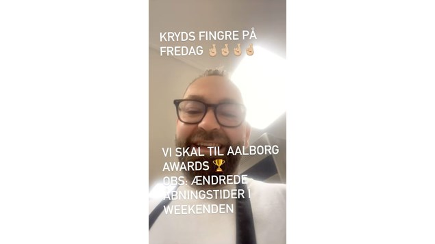 Sådan en nominering skal fejres og derfor lukker vi klokken 14.00 på fredag og holder lukket på lørdag.