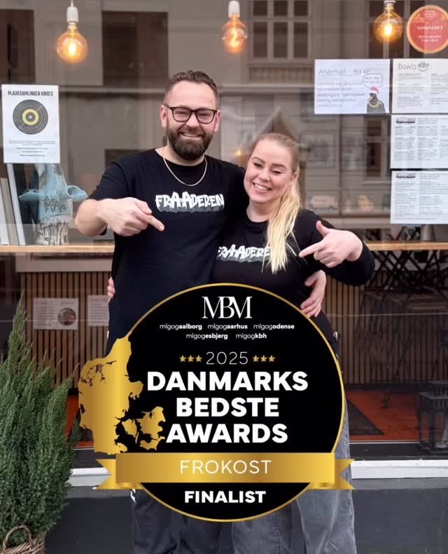 Jeps, den er god nok – vi er FINALISTER blandt Danmarks allerbedste frokoststeder, og vi ryster nærmest af spænding og lykke. Vi prøver at se rolige ud udefra, men indeni er der fuld FrAAderen-fest.