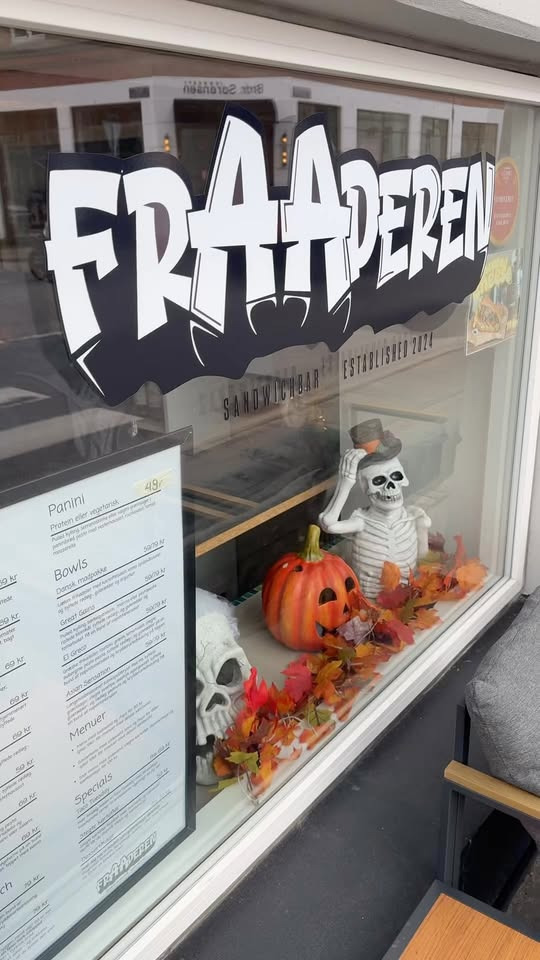 Det’ fandeme uhyggeligt, du! Eller, vi synes faktisk at her er ret hyggeligt Vi har pyntet butikkerne til halloween og er ved at fylde slikskabet.