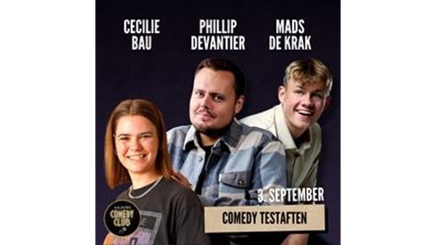 September måned byder på en række spændende comedy-events i Aalborg. Start måneden den 3. september med et show, hvor Phillip Devantier, Mads De Krak og Cecilie Bau leger med nye idéer og tester spritnyt materiale af. Det er en unik mulighed for at være med til at skabe magi sammen med komikerne.