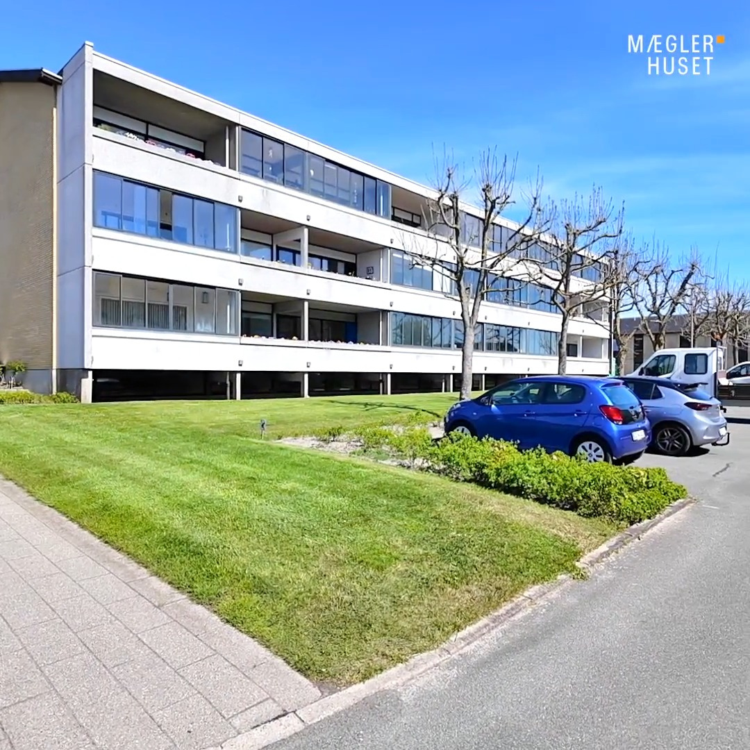 Her får du en velindrettet lejlighed med en attraktiv beliggenhed og god plads både inde og ude. Du bor tæt på naturen, i rolige omgivelser og med kort afstand til midtbyens liv. Og så venter der en stor sydvendt altan.
