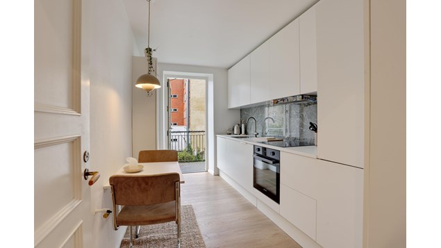 Entréen byder dig velkommen med en indbydende atmosfære og giver en god fordeling videre ind i boligen. Herfra træder du ind i det flotte køkken fra 2024, som præsenterer sig stilrent med hvide, grebsfrie fronter og masser af plads til både madlavning og opbevaring. Fra køkkenet er der direkte udgang til en stor, sydvendt altan, hvor du kan nyde solen hele dagen – et skønt ekstra opholdsrum i sommerhalvåret, perfekt til både afslapning og hyggelige middage under åben himmel. Lejligheden rummer desuden to charmerende stuer, der kan indrettes som henholdsvis opholds- og spisestue, hvilket giver fleksible rammer til både hverdagen og gæster. Hertil kommer et dejligt soveværelse samt et stilfuldt badeværelse, der blev renoveret i 2022 og byder på separat bruseniche og moderne materialer.