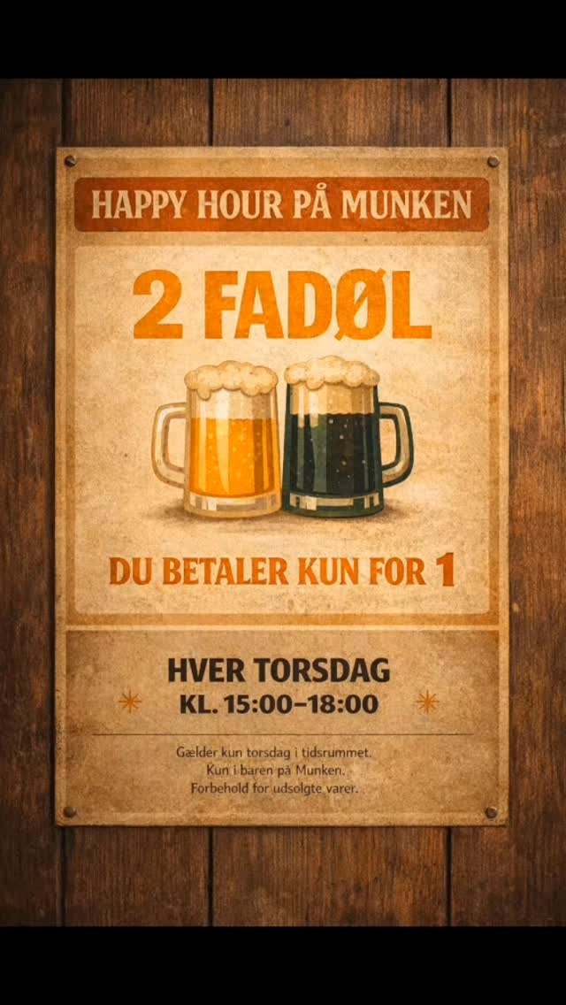 Munken Bodega er kommerciel partner med VORES By Aalborg og oplysningerne er hentet fra deres Facebookside. Støt lokalt og giv en tommel op på deres side.