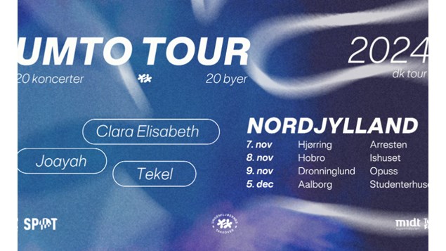 En aften med musikalske talenterPå Studenterhuset i Aalborg kan publikum opleve Clara Elisabeth, Tekel og Joayah, der alle er klar til at give en fantastisk koncertoplevelse. UMTO TOUR er kendt for at bringe et enestående hold af dygtige unge teknikere og arrangører med sig, hvilket sikrer en professionel og mindeværdig aften.