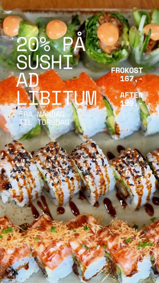 Husk at vi stadig har vores tilbud kørende med 20% på sushi ad libitum fra mandag til torsdag!